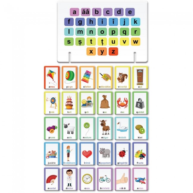 - 30 de cartonase didactice cu doua fete (litera / imagine si cuvant)