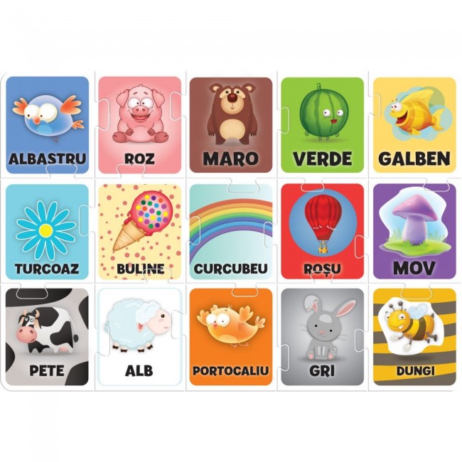 doua puzzle-uri de asamblat: unul cu animalute, culori si denumirile
